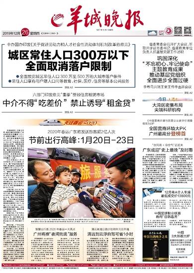 1957年10月1日创刊 2019年12月26 星期四 己亥年十二月初一 22℃ 14℃ 责编/袁婧 美编/郭子君 校对/杜文杰 报料热线:(020)114转羊城晚报报