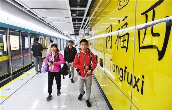 28日,新增开通的地铁同福西站,市民一大早赶来尝鲜 羊城晚报记者 汤铭明 摄 |