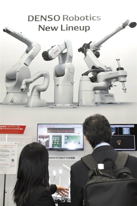 日本国际机器人展,观众在日本电装公司展台前驻足 新华社 华义 摄 |