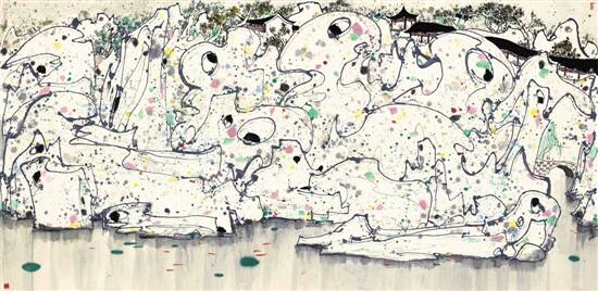 《狮子林》 吴冠中 水墨设色 1988年 144cm×297cm 2019年嘉德春拍 |
