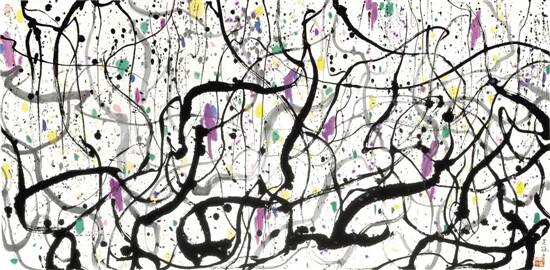 《紫藤》 吴冠中 水墨设色 1991年 70cm×140cm 上海美术馆藏 |
