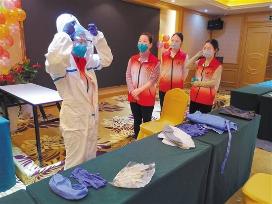 南方医院医疗队即将进入临床一线的第三批队员再次进行防护演练 通讯员 胡秀梅 摄 |