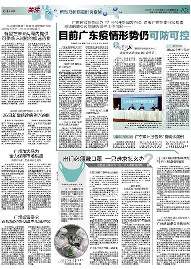 近日,随着新型冠状病毒感染的肺炎疫情形势发展,口罩几乎成为市民群众出门上街的必备品。26日,广东省新型冠状病毒感染的肺炎疫情防控指挥部办公室