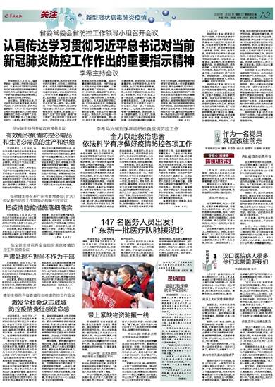 羊城晚报讯 1月28日,省委常委会、省防控工作领导小组召开会议,认真传达学习贯彻习近平总书记对当前新型冠状病毒感染肺炎防控工作作出的重要指示精神,进一步研究部署推动我省疫情防控工作。省委书记李希主