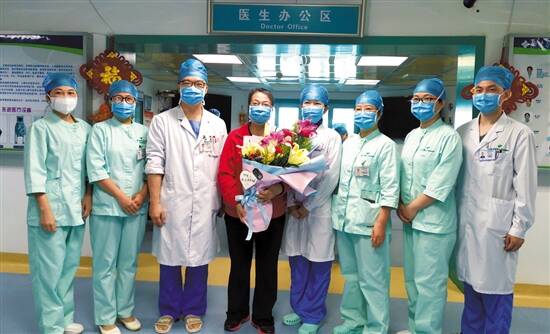 1月14日,从武汉探亲回湛的戴女士,突然感觉乏力气促,无食欲,发烧。当天,戴女士到广东医科大学附属医院就诊,被医院作为新型冠状肺炎疑似病例收诊进行隔离治疗。 1月20日,戴女士被确诊为新型冠状肺炎。“刚确诊的时候,内心充满恐惧,我每天见到医生,都会问她,我的病情怎么样?有没有机会治愈?”戴女士说,从确诊到治愈出院,虽仅有十天,但令她一生难忘。 如果把感染病房比作“战场”,广东医科大学附属医院的邓烈华、张媛莉医生便是病房外负责制定治疗方案的一线指挥员。“戴女士入院时,便是重症新冠肺炎,加之年纪较大,情况十分危急。”张媛莉医生说,针对戴女士的病情,医护人员不敢有丝毫怠慢,迅速召开医疗会议,制定治疗方案,投入战斗,对戴女士给予纠正低氧、抗病毒、免疫支持等治疗。并对戴女士进行心电监护、输液、定时测量体温,医护人员时刻监控病情发展,及时调整治疗方案……一系列救治有条不紊,在医护人员的专业治疗及贴心护理鼓励下,戴女士也乐观起来,其病情逐渐朝着好的方向发展。 “实在太感谢医护人员了,有这么专业贴心的医护团队,我相信,我们一定会战胜这一次疫情!”29日,正式出院的戴女士,怀抱鲜花,紧握医护人员的手,连连道谢,并表示了对抗疫的信心。医护人员也贴心叮嘱戴女士,出院回家后,要做好居家观察注意休息。