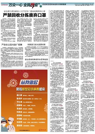 羊城晚报讯 记者赵燕华、通讯员岳建轩报道:1月29日,广东省住房和城乡建设厅发出《关于加强废弃口罩管理做好新型冠状病毒感染的肺炎防范有关工作的紧急通知》(以下简称《通知》),