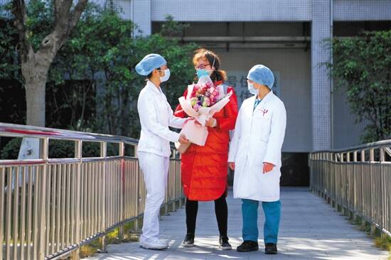 羊城晚报讯 1月30日上午11时许,一个身穿红色羽绒服的身影从广州市第八人民医院(嘉禾院区)住院楼缓缓走出,医护人员随即上前,为她献上鲜花。这是一名55岁的新型冠状病毒感染的肺炎患者,当天治愈出院,她是广州市首例出院的病患。 这位患者长期居住在武汉市,1月初,她在武汉市老人院看望一名生病发烧的老人,回家后不久就出现咳嗽、咽痛、乏力等症状,接着发烧,她到当地卫生院就诊时胸片检查发现双肺有感染,输液治疗3天后虽有好转,但仍有咳嗽。后来,她从武汉到广州探亲,并前往广州市第一人民医院就诊,新型冠状病毒初筛呈阳性,为进一步诊治,被收入广州市第八人民医院。 “一开始以为就是普通感冒。”这位患者告诉记者,打完针后烧退了,就一直按普通肺炎进行治疗。“在武汉已经治疗了一个星期,觉得好了才来广州。”她说,和普通感冒相比,患上新冠肺炎会更难受,主要表现为头疼、咳嗽、全身无力和肌肉疼痛。确诊后,她一度感到无助,好在有医务人员一直鼓励她安心治疗。 广州市第八人民医院ICU主任邓西龙是她的主管医师,邓西龙说:“由于她病情相对比较轻。主要治疗方法是给她增强营养再加上对症治疗,使用的是一般的抗感染药物及止咳化痰药物,也不用怎么打针。” 患者出院后是否有后遗症?广州市第八人民医院院长雷春亮介绍:轻症患者出院后不会留下后遗症。今天出院的这位患者入院后退烧,只是肺部有炎症。经过规范治疗痊愈,出院后和正常人一样。 “广州的医护人员都非常热情,水平也很高。来了后感觉很好,我很安心。”这位患者说,最想感谢广州市政府和市八医院,“是大家无微不至的照顾,帮助我好转。”“这个病不必恐慌,只要做好隔离,保护好自己和家人,是可以治好的。” 出院后,她仍会继续自我隔离一段时间,目前其家人也在自行隔离中。(符畅 张华 穗卫健宣)