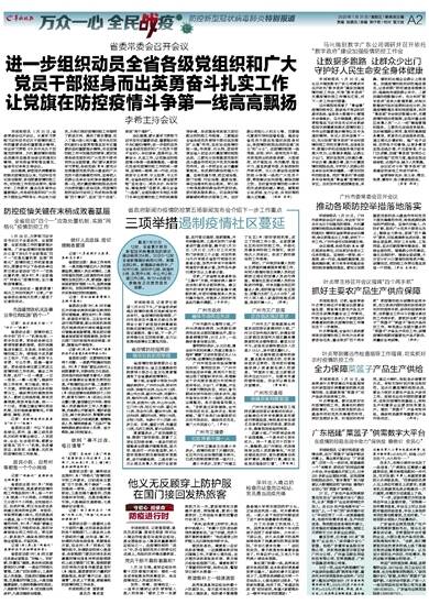 羊城晚报讯 1月30日,省委常委会召开会议,认真学习贯彻习近平总书记关于疫情防控工作的重要讲话和重要指示精神,传达学习贯彻《中共中央关于加强党的领导、为打赢疫情防控阻击战提供坚强政治保证的通知》精