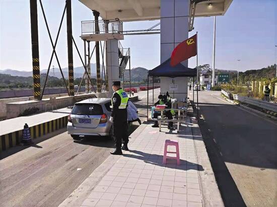 据介绍,疫情当前,潮州全市公安机关自大年初一开始,就联合卫健、交通等相关职能部门,在全市的入粤、入潮通道上设立了23个检查检疫点,严防死守。截至1月30日,潮州全市23个检查检疫点共查验车辆28274辆次,检查人员66680人次,发现发热病例5人,送医院诊治3人。 而随着疫情形势严峻,气温骤降,面对病毒感染危险、站点条件困难、连续奋战多天的站点执勤人员疲劳不堪。针对这种情况,潮州市公安局决定在各个站点成立临时党支部,由公安牵头,发挥“支部建在连上”的战斗堡垒作用和党员民警的先锋模范作用,并发出了“党员民警跟我上”的口号。 据悉,目前潮州23个检查检疫点临时支部的党员多则20余名、少则10名左右,既有公安民警,也有卫健、交通的工作人员,以及站点所在辖区的乡镇、村居干部。此外,充分发挥公安机关经常在一线工作、处置突发事件和拦截盘查经验丰富的优势,由民警担任支部书记和各班组的组长,模范带头开展检查检疫工作。 “我们检查检疫点共有工作人员42名,其中,民警9名、辅警20名。成立临时党支部后,共有党员16名。在党员民警的带头下,我们克服了天气冷、条件差、连续作战等不利条件,各项工作有序推进。”莞甬高速检查检疫点负责人、临时党支部书记苏湘彬介绍。 据了解,去年年底,为推进高速公路ETC建设,莞甬高速治安检查站拆除了原有设施。为了抗击此次疫情,工作人员临时搭建了简易的检查检疫点。所有坚守在岗的执勤人员白天太阳晒、大风吹,夜晚顶着两三摄氏度的严寒开展检查检疫工作。但民警和工作人员毫无怨言、坚守不退,战斗在疫情防控第一线。