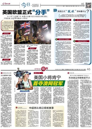 2020年2月2日/星期日/ 体育编辑部主编/责编 吴广崖 / 美编 关彩玉 / 校对 朱晓明