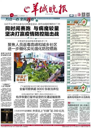 1957年10月1日创刊 2020年2月4 星期二 庚子年正月十一 15℃ 11℃ 羊城派微信公号 羊城晚报微信公号 防控新型冠状病毒肺炎特别报道 责编/袁婧