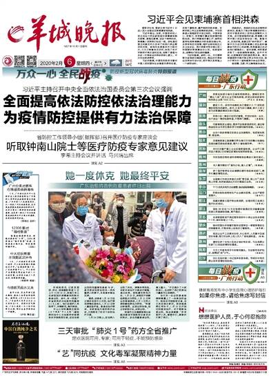 1957年10月1日创刊 20℃ 14℃ 2020年2月6 星期四 庚子年 正月十三 责编/陆德洁 美编/李焕菲 校对/杜文杰 报料热线:(020)114转羊城晚报报料、(020)87