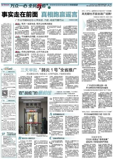 羊城晚报讯 记者张华、董柳、符畅,通讯员贾卫东报道:用于治疗新型冠状病毒感染的肺炎药物——肺炎1号,目前已经被省药监局批准为院内制剂,可以在广东省内定点收治新型冠状病毒感染肺炎患者的医院内使用。
