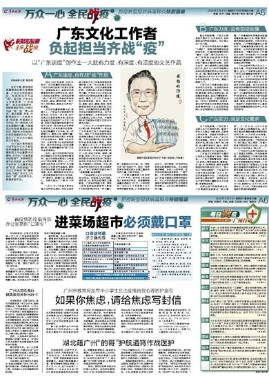2020年2月6日/星期四/ 要闻部主编 责编 杨清华 朱帆/ 美编 丘淑斐 / 校对 潘丽玲 防控新型冠状病毒肺炎特别报道