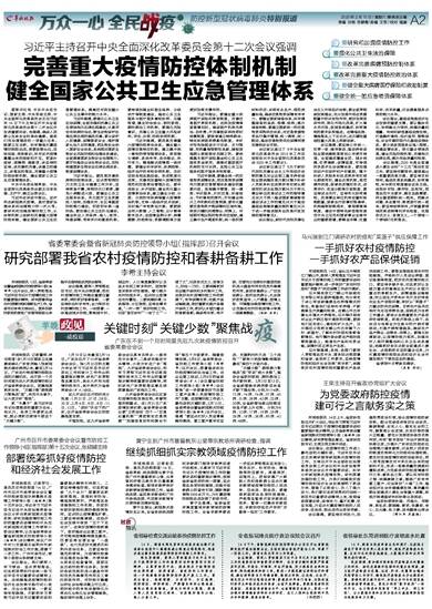 羊城晚报讯 记者董柳、林洁报道:自1月19日国家卫生健康委确认广东首例输入性新冠肺炎确诊病例以来,截至2月14日,广东在打响疫情防控阻击战的关键时刻,在不到一个月时间里先后九次就疫情防控