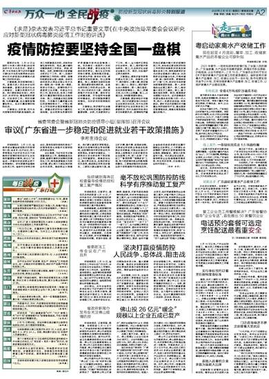 羊城晚报讯 2月13日,省委常委会暨省新冠肺炎防控领导小组(指挥部)召开会议,深入贯彻落实习近平总书记关于统筹做好疫情防控和经济社会发展的重要指示精神,审议《广东省进一步稳定