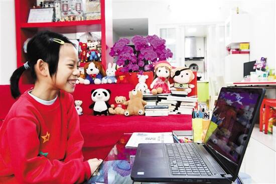 广州体育东路小学海明学校学生在“云课堂”上课 羊城晚报记者 邓勃 摄 |