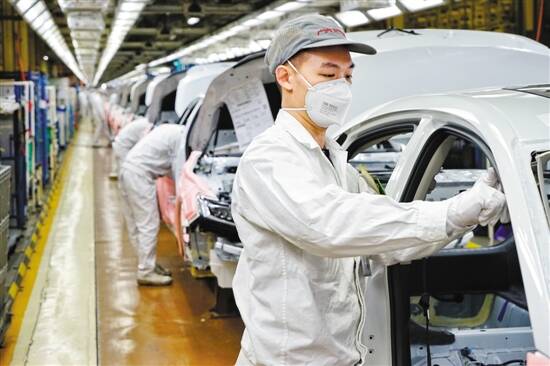 今天上午,广汽本田工人在车间有条不紊地工作 |