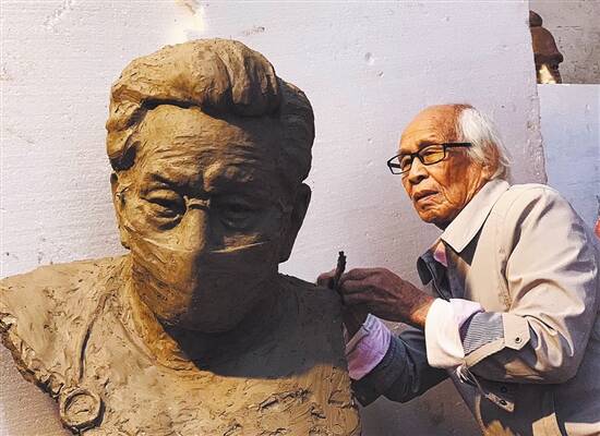 雕塑家曹崇恩近日在创作钟南山院士像 |