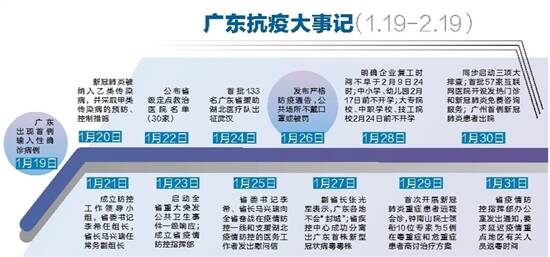 撰文/张璐瑶 董柳 符畅 周聪 黄丽娜 初春时节,乍暖还寒。 从1月19日,国家卫生健康委确认广东省首例输入性新型冠状病毒感染的肺炎确诊病例以来,一个月的时间过去了。这31个日夜,广东和广东人从未遭遇过。我们的社会和生活,经历了从未有过的缓慢和停滞;我们的心情因为疫情,被填得酸涩堵胀;甚至连21世纪20年代的第一个春节和元宵节,都是从未有过的冷清,人们的脸上多了口罩,少了欢笑的表情…… 没有一个冬天无法逾越,没有一个春天不会到来。疫情之下,政府在行动,企业在行动,社会管理被分解到最基层的每一根“毛细血管”。我们每一个人都在行动,无论是冲锋在前的医护人员、公安干警、检疫人员,还是奔走在大街小巷的外卖小哥、防疫宣传者,大家都在各自的位置上,为打赢这场防疫阻击战贡献着自己的力量。 1 冲锋前线 广东精兵强将驰援湖北 除夕夜,100多人组成的首批广东医疗队向着武汉出发。这100多人是广东顶尖三甲医院里的精兵强将——他们来自广东省人民医院、广东省第二人民医院、中山大学附属第一医院、中山大学孙逸仙纪念医院、中山大学附属第三医院、南方医科大学南方医院、南方医科大学珠江医院、暨南大学附属第一医院、广州医科大学附属第一医院等。 截至2月18日,已有20批次医疗队共2147人,奔赴武汉、荆州两地多家医院,打响了湖北“保卫战”。 驰援湖北,广东医疗队不仅自备“干粮”——口罩、防护服等,还带上“家底”——ECMO(体外人工肺膜)、移动P3实验室(生物安全防护三级实验室),为“战疫”提供“硬核”装备支持。“在荆州,每个县(市)中心医院、人民医院都有来自广东最强的ICU团队支援。”在湖北荆州抗疫一线的广东省卫生健康委副主任黄飞说。 在广东医疗队员的参与下,治愈出院人数越来越多—— 2月8日,汉口医院广东医疗队病区一天出院了30名患者。2月15日,经广东医疗队专家组会诊、认定,当天21名患者治愈出院,这是荆州洪湖自疫情发生以来的首批出院病人。2月16日,中山三院133名医护人员接管的武汉同济医院光谷院区重症病区,走出首位痊愈患者。 前方鏖战,后方支援。2月17日下午,国家呼吸系统疾病临床医学研究中心主任、中国工程院院士钟南山在广州医科大学附属第一医院与武汉前方的广东医疗队重症患者治疗团队再次开展远程视频会诊,讨论疑难病例的治疗策略。顶尖专家远程视频会诊,这是广东为支援湖北“主战场”输出的“最强大脑”。 2 争分夺秒 中药治疗临床效果凸显 包围圈正在缩小,歼灭战推进顺利。 “战疫”持续一个月,情势开始出现了新的积极变化。2月19日的数据显示,全国累计确诊增加394人,增幅继续下降;湖北以外地区新增病例实现16连降,连续三天缩小为两位数;19日广东新增确诊仅1例;17日、18日、19日,广州连续三天确诊病例“零新增”…… 过去这一个月,广东各界与新冠肺炎疫情展开的这场战斗是何其复杂胶着。 “面临全世界都没见过的新东西,实践往往先于科研,大家都摸着石头过河。”钟南山说。 敢为天下先,广东人再次将刻在骨子里的精神应用于这场“战疫”。早在1月19日,广东就开始部署针对新冠肺炎的科技攻关应急项目,预计总体投入将不少于5亿元。1月23日,广东启动应急立项,以临床救治为核心导向,围绕重症肺炎临床救治、院感综合防控、疫苗研发、药物研制、检测诊断等进行攻关。 此后的半个多月里,成千上万的科研工作者与广东不断攀升的确诊、疑似病例数争夺时间。 1月23日,广东在全国范围内率先推出“肺炎1号”中医药方,随后被批准用于全省新冠肺炎定点救治医院临床使用,并捐赠给湖北;1月24日,广东省中医药治疗方案出炉;1月27日,广东省疾病预防控制中心成功从确诊患者的肺泡灌洗液中分离出新型冠状病毒株;1月29日,广东开始磷酸氯喹科研临床试用,目前已在广东积累了相当数量的临床救治有效案例,并在广东援助湖北的医疗救治中扩大试用;1月30日,中山大学倡议联合建立应对新发传染病的防控平台;2月5日,广州医科大学联合广州海关成功分离第一株在广州本地被感染病例的新型冠状病毒毒株;2月7日,华南农业大学联合攻关团队的最新研究发现,穿山甲为新型冠状病毒的潜在中间宿主;2月11日,钟南山院士团队宣布从确诊患者的粪便中分离出活的新型冠状病毒;2月14日,钟南山院士团队宣布最新研发出新型冠状病毒IgM抗体快速检测试剂盒,并已在实验室和临床完成初步评价;2月18日,钟南山院士团队联合国家生物安全检测重点实验室(P3实验室)等单位公布,发现连花清瘟胶囊/颗粒等5种中成药显示体外有显著抑制新冠病毒的细胞病变效应…… 广东的科研成果很快应用于实践。与此同时,广东全面建立起中西医联合会诊制度,中西医结合向新冠肺炎发起强力攻势,效果显著。 在疫苗研发上,广东也在争分夺秒。2月18日,省疫情防控指挥部办公室科研攻关组组长、省科技厅厅长王瑞军透露,目前,广东已有3种疫苗的研发取得阶段性进展。“我们希望,按照科研规律、疫苗研发周期规律容许的最快速度开发出疫苗,并得到应用”。