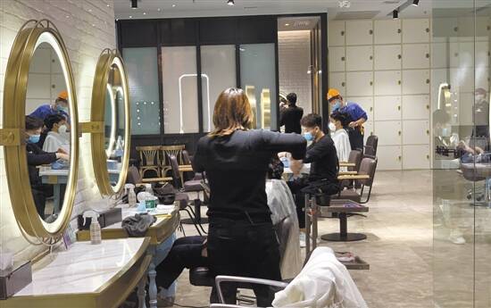 高德置地冬广场,一间已复工的发廊 |