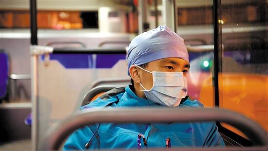 2月28日晚8时,罗虔浩坐公交班车回驻地 |