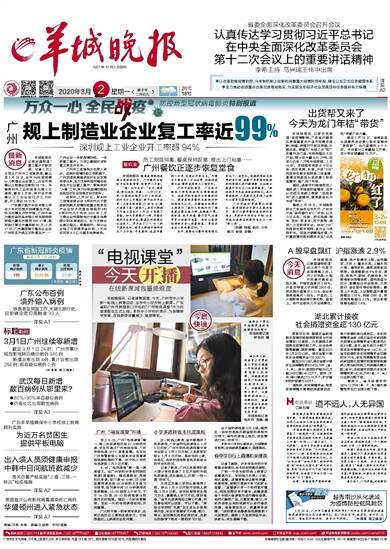 1957年10月1日创刊 2020年3月2 星期一 庚子年 二月初九 26℃ 18℃ 责编/冷爽 朱帆 美编/丘淑斐 校对/温瀚 报料热线:(020)114转羊