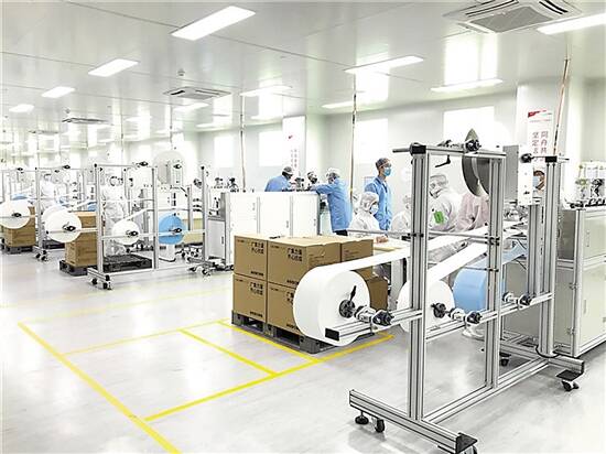 ▲▲经广汽集团技术团队争分夺秒的研究,2月20日,广汽自制口罩5条生产线同时开启,日产能达25万片 |