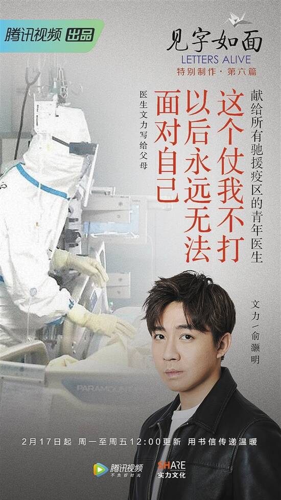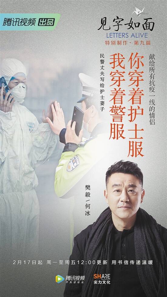羊城晚报记者 龚卫锋 “烽火”连天日,家书抵万金。在全民战疫的重要时刻,大型明星读信节目《见字如面》从2月17日起,每周一至周五12:00推出战疫特别制作版,从全国战疫过程中精选出感人至深的书信,邀请明星在家朗读并自行完成录制。 虽然每期节目只有一位明星,只读一封信,时长也只有五分钟,但这档“速成”节目,在腾讯视频播出后,收获了一波好评,抚慰人心、鼓舞斗志的力量持久绵长。节目暂定播出15期,叶璇、李光洁、俞灏明、何冰、于小彤、陈数等文艺工作者都是读信人。 节目导演关正文说:“战疫是全国人民的事,没有一个人可以置身事外。从疫情开始,我们就一直在关注、收集相关信件。通过网络,大量信件成为感动亿万人的公共素材,极具传播价值。” 制图/王军 A 【制作】 明星们在家自录读信视频 从决定做《见字如面》战疫特别节目,到正式播出,关正文的团队只有4天准备时间,他说:“很多年轻编导就像前线的战友一样,连续奋战,30小时没睡觉。” 疫情期间,节目主创都在家隔离,无法进行现场舞台录制,于是,明星们在家自行录制读信视频,经过后期团队剪辑包装后,制作成短视频上线播出。明星群体的配合度非常高,而且都是纯公益录制,关正文说:“没场景、没灯光、没专业录音设备和化妆造型,但这是非常时期,大家全都第一时间回答说:我愿意!” 制作过程中,编导要从几百封信里选编15封信件。关正文称,入选的信件比较全面地反映疫情期间多种岗位的境况和人员心态:“其中,有医护人员写给家人的,也有家人鼓励一线战士的,有写给警察的,写给小卖店老板的,也有写给快递小哥的,有妈妈写给儿子的,也有孩子写给父母的。有标准的信件,也有诗歌。题材各有侧重,各有感动人心之处。” 除了选信,编导团队还要下载大量图片、视频、音乐素材,最终设置“配乐读信单曲MV”的节目样式。读信的明星也要克服困难,在家自己打灯、化妆,完成自拍工作。关正文说:“也许疫情过后,再看这些视频会有些粗糙,但我们尽最大努力做到精致化,将来再看也不后悔,争取能够成为这个特定时期一种特殊的记忆方式。” B 【感人】小学生大男人都担心妈妈 特别节目中的信,传递了质朴的情感。 “距离除夕你离家奔赴武汉七天了。七天,日子长得像是一年。”首期节目中,演员叶璇读了上海医务工作者夏江临写给支援武汉前线的丈夫许诗琨的一封信。特殊时期的特殊氛围,仅仅读了几句拉家常的话,叶璇已有些哽咽。 第九期节目中,何冰读的信打开了这样一幕:巴彦淖尔市的辅警樊毅与护士妻子郑贺同时接到单位通知,取消休假,上岗防疫。樊毅给郑贺写了封信,他难以想象,平时柔弱的妻子,要鼓足多大勇气才敢同死神较量。平日里,郑贺会频繁向樊毅“求助”:“老公,我想吃罐头,但我拧不开盖子。”取的快递太重,她也会给打樊毅电话:“好重,我拎不动。”樊毅都会回答:“我来!”而这次,郑贺却对他说:“老公,我来。” 第七期节目中,来自上海普陀区万里城实验学校的五年级小学生王玮豪,朗读了自己写给支援武汉一线的护士妈妈的信,信中记录了他得知妈妈要去武汉后担心、害怕、不舍的心情:“我心‘怦怦’地跳,泪水夺眶而出。我感到害怕,万一你感染病毒,我不敢再想……” 不仅小男孩担心妈妈,大男人也会为妈妈着急。在第八期节目中,56岁的曹晓英是湖南省郴州市第二人民医院感染病诊疗中心主任,在决定走进医院隔离病房时,儿子跟她急了:“现在形势严峻,为什么你这个快退休的人还要进隔离病房上一线?”曹晓英用一封信回应了儿子的不理解。蔡明读了这封信:“我深知传染病给人们带来的痛苦和折磨,我毕生的愿望就是消灭这种痛苦和折磨。” 普通的劳动者也同样纳入了节目的视野。疫情期间,许多城市的居民买菜要靠网购,于小彤讲述了网购者杨乐多和一位外卖小哥的故事:杨乐多在网上购买食材,没想到外卖小哥敲门时带着哭腔说,不小心把鸡蛋打碎了,会赔偿,只求别给差评。杨乐多说没事,但对方依旧愧疚不已。后来杨乐多给外卖小哥写了一封信:“我知道,鸡蛋能摔成这样,人一定也摔得不轻……我们卸下了冷漠,学会了宽容,丢下了自私,懂得了体谅。我知道,北京大雪,终究会停的;这场疫情,也终究会过去的。” C 【互动】 马薇薇约小护士一起庆生 特别版节目在内容传播方面,有不少写信人和读信人的互动。李光洁读了一封信,讲述医生蔡毅追忆医院楼下的小卖部老板林军:“很多小人物,在我们身边不那么起眼,突然没了,我们才发现他在我们生命中是那么重要。”蔡毅转发了这条视频,说道:“李光洁老师硬是把我自己写的文章,让我自己听哭了!感谢大家关注,疫情当前,让我们都暂时忘掉不好的事情,乐观向上,迎接阳光明媚的明天。” 护士张凤在金银潭医院的病房里度过了32岁的生日,她在日记里为家人许下愿望。这封信由《奇葩说》知名辩手马薇薇朗读,张凤在视频发布后给马薇薇留言:“《奇葩说》陪了我六季,我在电视机那头随你们笑,随你们感动,没想到,今天我们以这种方式‘见面’,如果说伟大,是我的职业群体伟大,如果说不平凡,是国家之所需,我们不过是在履行自己的义务而已。我们会保护自己,安全返航。”马薇薇回复她:“谢谢你的写作和贡献,希望明年你的生日,我能有幸跟你一起度过。” 这档特别节目还出现了“
