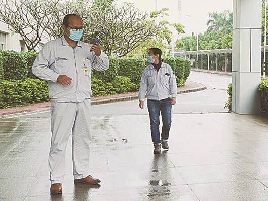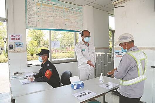 刘庆峰(图中)对进厂人员均严格依照指定标准防护、消毒 ▲ |