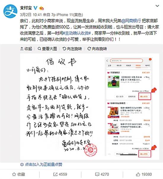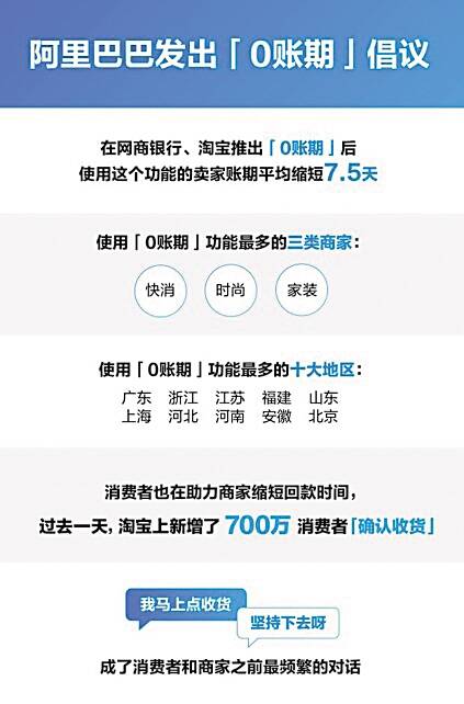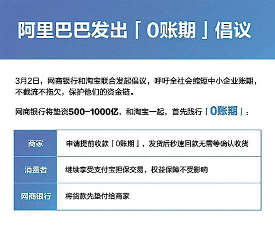 “上游早点把钱给我们,我们就能挺过去,晚一天,我们就多一天煎熬和风险。”淘宝某男装旗舰店负责人这么说。复工潮开启后,资金链成为中小企业的生命线。受疫情的影响,互联网已经成为大家近期主要的购物聚集地,随着快递的全面复工,网上购物的订单也在迅速增长,似乎让人们看见了网购“春天”的到来。但事实上,随着订单增加,很多中小卖家却遇到这样一个难题:货物大量发出,但资金却难以周转过来。 小店转机 资金周转问题解决 小老板们信心经营 在广东,阿里的疫情扶持举措“0账期”对燕印象食品旗舰店来说,是雪中送炭。面对疫情期间的营业艰难,燕印象食品旗舰店吴润远提到:“我们过年没有打烊,复工也早,店铺销售同比去年增长30%多。但春节和疫情期间,确认收货、货款到账的时间延长,对我们造成了不小的现金压力。”淘宝出台的“0账期”回款措施,让燕印象食品从2月12日起每天能回笼八成的销售额,相当于每天有十几万元入账,“我们还申请到100万元的网商银行贷款。有了这两笔现金,我们店铺的资金周转效率极大提高了。运营推广费有了着落,供应商也体谅我们,愿意用分期收款的方式给我们生产新的商品”。 “作为老板,我必须让他们看到希望,曾一度想过抵押房产去贷款。现在好了,我们的资金周转问题解决,天猫店生意稳中有升,年前的工作计划也能如常推行,相信今年应该会经营得更好!加油!”吴润远透露,前期刚开业还困难的时候,员工士气低落,上游供应商也信心不足,认为今年一定会非常“难捱”,但现在有了“0账期”回款措施的保障,大家也都有了信心。 主营湖南米粉的霸蛮,受疫情影响无奈让60家门店歇业,却要负担一个月2000万元的经营成本。在店铺的生死存亡间,霸蛮负责人张天一果断集中资源发力线上,做起互联网餐饮服务。“在天猫当天交易就可以提款,疫情期间,我们提前拿到660万元的现金,这是我们现在唯一有宝贵现金流进来的渠道。”张天一由衷感叹,“最困难的时候,0账期是救命举措。” 3月2日,《淘宝经济暖报》总结阿里巴巴扶助中小企业措施阶段性成效“说到做到”。其中,30万商家从网商银行拿到了利率八折的100亿元特别扶助贷款用于复工复产。免费“0账期”服务预计将在4月之前为淘宝商家带来500亿元至1000亿元的现金流。 发起倡议 小店现金流压力大 缩短账期可缓解 在疫情当前,不少商家的现金流开始出现问题,店铺运营举步维艰甚至会面临倒闭的风险。 3月2日,网商银行和淘宝联合发起倡议,呼吁全社会缩短中小企业账期,不截流不拖欠,保护他们的资金链;网商银行将垫资500亿-1000亿元,和淘宝一起,首先践行“0账期”。商家发货后可申请由网商银行垫资货款,方便扩大再生产,资金成本和风险由淘宝平台和网商银行承担。淘宝推出国内电商平台第一个免费“0账期”服务——发货就能秒收款,就为缓解中小企业的现金流压力提供了极大的支持。这是目前缓解现金流压力门槛最低的举措。 同时,支付宝也号召大家收货满意之后,第一时间主动确认收货,商家早一分钟收到钱,就多一分有“活下来”的可能。 倡议中提出,符合条件的650万淘宝商家都可以在发货后,申请提前收款,消费者确认收货前,网商银行会替消费者垫付货款;消费者可以继续享受支付宝担保交易的安全体验,权益保障不受影响。在3月31日之前,这项服务都将免费提供。 调研显示,八成中小商家存在资金短缺,但有七成同时表示,只要资金链不断,就对生意回暖抱有信心。因此,缩短账期对他们来讲,尤其关键。据悉,在淘宝推出无成本“0账期”后,卖家账期平均缩短7.5天,其中快消、时尚、家装是使用“0账期”功能最多的三类商家。目前,广东、浙江、江苏、福建、山东、上海、河北、河南、安徽、北京是使用“0账期”功能最多的十大地区。 消费者暖心 尽快确认收货 帮助商家“活下来” 值得一提的是,消费者们也在积极配合、尽快“确认收货”,默默助力商家缩短回款时间。数据显示,过去一天,淘宝上就新增了700万消费者确认收货,帮助商家提前回拢资金。“我马上点收货”“坚持下去呀”成了消费者和商家之间最频繁的对话。 许多行业都有个不成文的规定,商家回款周期通常是一两个月,甚至更长。放在平时,买商品收到货后,消费者一旦发现商品存在质量问题就可以向淘宝平台申请退款,从而减少了用户的损失。然而很多用户在网上购物时,并没有主动“确认收货”的习惯,因为时间一到钱款还是会自动打给商家。这放平时没什么问题,但在疫情当前,不少商家的现金流开始出现问题,店铺运营举步维艰甚至会面临倒闭的风险。在提出“0账期”的同时,支付宝公开号召用户尽快“确认收货”,为缓解商家现金流压力出一份力。 以前是只有等消费者点击确认收货,店铺才能收到资金;现在则是只要店铺确认发货了,资金就会自动到账。在传统意义上讲,这个改变为回款周期缩短了一周,疫情期间可缩短至少半个月的时间。据了解,4月份之前商家发货后无需等待消费者确认收货,就能收到由网商银行先行垫付的货款。淘宝平台和网商银行承担资金成本和风险,这意味着“0账期”可以极大地加速资金周转以便扩大经营,是目前中小企业缓解现金流压力门槛最低的举措。 阿里助力 20项特殊举措 扶助中小企业发展 对于部分商家以及生产者而言,