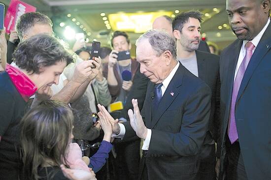 2月29日,布隆伯格(中)在竞选活动中 新华社发 |