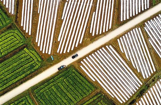 甘肃省张掖市甘州区碱滩镇的万亩田地依旧有霜冻,但春耕也已开始 |