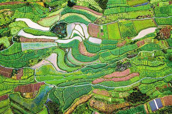 湖南湘西泸溪县大陂流村田间已绿油油一片 |