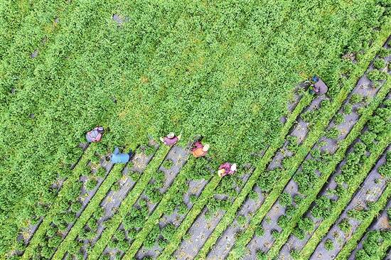 湖南怀化万佛山镇石壁村农民,在中草药种植基地里辛勤劳动 |