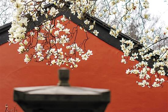 ▲3月11日,南京清凉山的清凉寺里,玉兰花优雅绽放 (视觉中国/供图) |