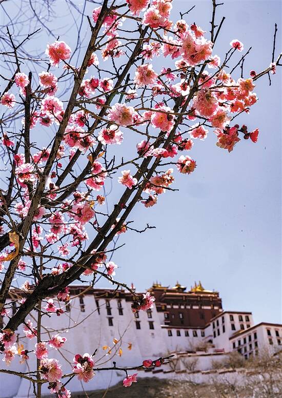 ▲桃花掩映下,拉萨的布达拉宫从寒冬中醒来 (新华社 普布扎西 摄) |