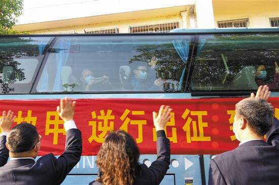 广东援助荆州医疗队离开时,市民自发送别 羊城晚报特派荆州记者 梁喻 摄 |