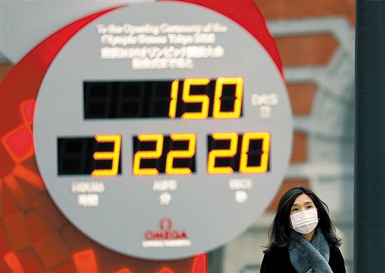 戴着口罩的行人走过东京奥运会倒计时屏 新华社发 |