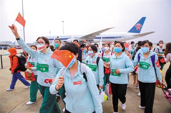 3月23日下午3时15分许,一架搭载着322名广东第十四批支援湖北武汉医疗队(佛山第四批)队员的飞机降落在广州白云国际机场。经过40天在武汉一线的奋战,他们终于回家了。抵达佛山后,医疗队员将在位于南海西樵山的定点酒店进行14天的休整。 1 离开武汉,一路感动一路歌 23日一大早,佛山市妇幼保健院的队员们就将酒店的房间整理得干干净净。“来的时候这里布置得很漂亮,走的时候也要整整齐齐。”他们说。这是他们圆满完成任务离开武汉的日子,大家既高兴又有些不舍。 当队员们走出酒店的时候,在这里守候多时的武汉志愿者们为队员们送上了小礼物。一首《听我说谢谢你》表达了对医疗队队员们的感谢。不少武汉市民也自发来到驻地酒店为佛山医务人员送行,并送上书法作品、感谢信等。“虽然不认识你们,但我们能感受到你们带来的温暖。”一武汉市民哽咽着读出感谢信。 简单的告别仪式后,医疗队队员们登上了开往机场的大巴。一路上,很多武汉的市民走上街头,夹道欢送佛山医疗队。他们高喊:“感谢佛山,武汉加油!” “这是一次享受最高礼遇的撤离,骑警列队开道、志愿者延绵几里送行、两边居民夹道挥手致敬,一路绿灯畅通无阻。”医疗队队员王妙婷说。 大巴途经的武汉长江大桥时,不少队员在车厢内唱起歌,《真心英雄》《明天会更好》《万水千山总是情》…… 10时50分左右,队员们抵达武汉天河国际机场。下车后,他们办完登机手续,纷纷拿出手机合影留念。队员们每人还领到了一张特殊的登机牌,目的地为“美丽故乡”。 2 平安抵达,一个不少都回来了 13时40分许,佛山医疗队322名队员登上了武汉飞往广州的飞机。飞机起飞前,机长通过机上广播说:“感谢白衣天使们,请大家放松心情,现在由我们来守护你们,咱们一起回家!” 15时15分,飞机平安抵达广州白云国际机场。舱门一开,他们开心地小跑着冲下飞机舷梯。因为暂时还不能跟其他人有任何身体接触,他们只能和在停机坪前等待已久的领导、同事隔空打招呼。 “我们圆满完成任务,顺利返回,队员一个都不少全部回来了!”医疗队领队、佛山市卫生健康局副局长曾章康说。他表示,在武汉的40天里,佛山医疗队116位党员冲锋在前,鼓舞了其他同事。这支医疗队接管了武汉市第一医院两个重症病区,其间共收治168名病人,累计出院156人,治愈率达92.9%,医务人员零感染。 佛山市委书记鲁毅、市长朱伟等也来迎接医疗队员回家。鲁毅表示,“大家圆满地完成了任务,为佛山人民争了光,是佛山人民的英雄,佛山人民向你们致敬!” 佛山市妇幼保健院党委书记、院长郭晓玲说:“我为我们的队员感到骄傲,现在他们圆满完成了党和人民交给的任务,平安归来,我心里有说不出的高兴。回来以后,我们要号召全院同志向他们学习,他们是真正的英雄。同时,我们还要做好队员们的休整工作,让他们好好休息,缓解身体的疲劳和心理的压力。”