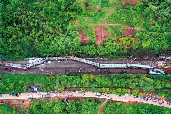 火车脱轨现场 新华社发 |