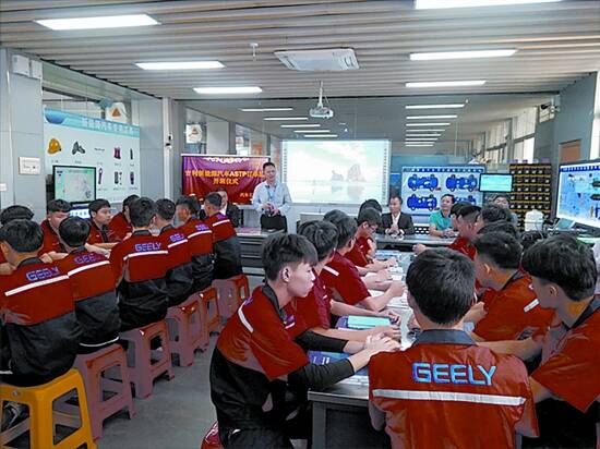 校企合作是高职办学一大特色,图为吉利新能源汽车与轻工职院联合开班 |