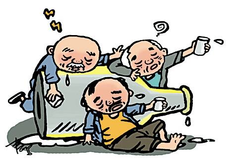 近日,江苏镇江市某小区附近的一家饭店里,三名年过七旬的老人聚餐,两斤多白酒下肚后,醉得不省人事。因受疫情影响,三位老人长时间没有见面,久别重逢相约不醉不归。(3月31日《现代快报》) 随着疫情形势的好转,一些地方逐步“解封”,人们的日常生活渐渐重回正轨。和年轻人一样,老人们也有社交的精神需要。老朋友相聚本是一件美事,久别重逢自然分外亲热。在人情、面子、情感的裹挟下,三位老人原本“悠着点喝”的边界被不断突破,最终“放飞自我”放开了喝。推杯换盏,酒酣耳热,人生得意须尽欢;你一杯来我一杯,酒越喝越多,超过了身体能够承受的范围;不醉不归的三位老人,硬是喝了两斤多白酒。 醉得不省人事的“叙旧变酗酒”,是过度补偿心理机制驱动下的报复性消费的一个缩影。一些人经过了长时间的自我压抑之后,为了满足内在的某种心理平衡,会在接下来的一个阶段里,通过报复性消费来进行自我弥补。适当的自我弥补,具有自我疗愈的功能,但过度了,就会适得其反。 “叙旧变酗酒”提醒我们:在疫情防控取得显著成效的背景下,老百姓的心理健康不容忽视,要避免“只要一放松,有些人就放纵”。