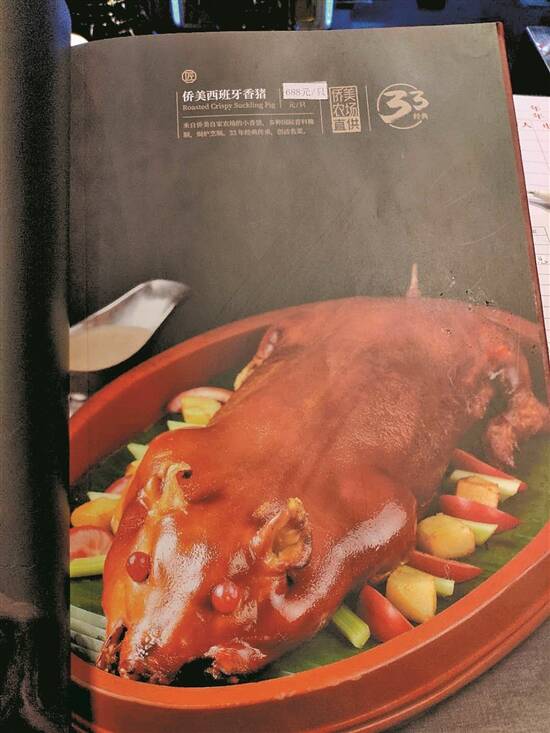 侨美食家菜单上的乳猪菜品 |