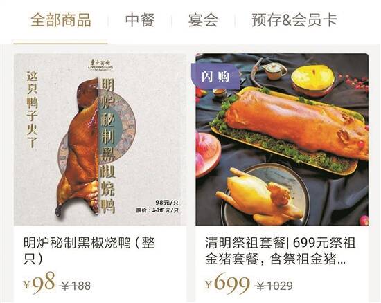 东方宾馆微商城内销售的部分清明节菜品 |