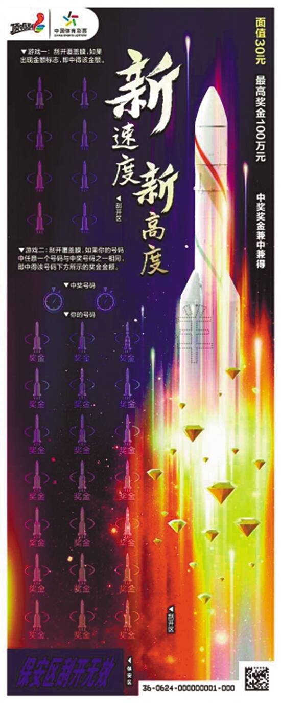 羊城晚报记者 安颖 通讯员 关言 羊城晚报记者从国家体彩中心获悉,“新速度新高度”火箭版正陆续在全国各地上市销售,通过一枚穿云破雾、问鼎苍穹的火箭,展现出中国高度。在此之前,顶呱刮去年曾发行“新速度新高度”高铁版,用一列飞驰的高铁展现出中国速度。 面值30元头奖100万元 见证中国新高度 2019年,中国航天以全年发射运载火箭34次的成绩再次位居全球第一;2020年,这一数字有望突破40次。顶呱刮“新速度新高度”火箭版的上市,正是用特殊的方式与国人一同见证中国的新高度。 顶呱刮“新速度新高度”火箭版与高铁版一样,单票面值30元,头奖100万元,并且延续了高铁版的设计风格,使用了时尚炫目的光影效果,具有很强的视觉冲击力,底色同样为紫色。与高铁版为横版不同的是,火箭版采用竖版设计,展现了火箭点火升空的壮丽时刻,科技感、现代感、未来感跃然纸上。 组合玩法简单好中 随手微公益 顶呱刮“新速度新高度”火箭版采用“找金额符号+数字匹配”的组合玩法,单票共有29次中奖机会,设10个奖级,奖金从30元到100万元不等。具体游戏规则为:游戏一:刮开覆盖膜,如果出现金额标志,即中得该金额。游戏二 :刮开覆盖膜,如果你的号码中任意一个号码与中奖号码之一相同,即中得该号码下方所示的奖金金额。中奖奖金兼中兼得。 另据了解,购彩者每一次购买顶呱刮的同时,也完成了一次随手微公益的善举。“新速度新高度”彩票背面右上角印有这样一句话:感谢您为公益事业贡献6元。即购彩者每购买一张“新速度新高度”,将有6元成为体彩公益金。点点微亮汇聚成光,这些体彩公益金将成为贫困学生的助学金、困难群体的医疗费、百姓身边的体育健身器材……为社会公益事业和体育事业贡献力量。