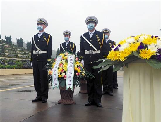 江门市殡仪馆工作人员向墓园内的先人敬献花篮 通讯员供图 |