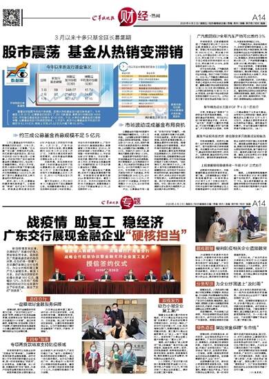 新冠疫情发生以来,交通银行广东省分行深入贯彻落实党中央、国务院及广东省委省政府的各项决策,在总行统一部署下,主动履行金融企业社会责任,为企业抗疫和复工复产注入金融活水。截至3月末,该行各项贷款较年