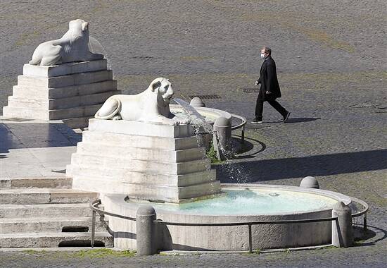 “封城”延长 4月10日,在意大利首都罗马,一名男子走过人民广场。意总理孔特当天表示,原定4月13日结束的全国“封城”措施将延长到5月3日。 |