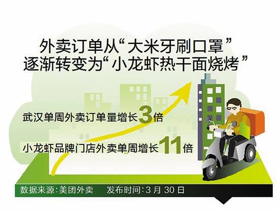 羊城晚报记者 沈钊 4月8日零时,武汉结束了长达76天的封城,按下了“重启键”。重启中的武汉,餐饮、购物、出行等各方面都在逐步恢复:截至4月8日中午有近六成餐饮商家恢复美团外卖业务、支付宝“云上商圈”1天内吸引超1亿客流、哈啰单车骑行量4月8日骑行量是1月23日封城当日骑行量的10倍……大数据显示,武汉的烟火气回来了。 “过早”+宵夜 最爱热干面和小龙虾 在武汉“封城”的76个日夜里,外卖成为了武汉市民日常生活的基础保障。随着武汉“解封”,外卖小哥的订单也从原来的“大米牙刷口罩”逐渐转变为“小龙虾热干面烧烤”。据上周美团外卖公布的数据显示,武汉市外卖订单量单周增长3倍,其中小龙虾品牌门店的外卖单量单周增11倍。 而在武汉迎来解封之后,外卖数据也持续迸发新活力。美团外卖数据显示,截至4月8日中午12时,武汉已有近六成餐饮商家恢复外卖业务。其中小龙虾外卖单量继续飙升,4月7日中午12时-4月8日中午12时,武汉一共卖出8000多份小龙虾外卖。 很多人说,在武汉“过早”可以一个月不重样。随着武汉“解封”,昔日那个“早餐之都”又回来了。羊城晚报记者从美团外卖了解到,进入4月,外卖订单量单周比上个月同期增长近五成,其中热干面、豆皮等武汉“过早”必点餐品增幅明显。4月8日上午7时半-8时半,武汉一小时内就售出近千份豆皮外卖。4月8日清晨6时至当天中午12时,武汉共售出近万份热干面外卖。 有意思的是,武汉的夜生活也开始有了暖意。微信支付数据显示,与3月27日相比,武汉老百姓在4月3日当天宵夜格外热闹,凌晨0时到4时,“夜猫子”都爱光顾的小吃和快餐生意回暖,增幅分别达到了198%和105%。 电动车+共享单车 武汉交通正全面复苏 随着离汉通道管控解除,再加之公交、地铁持续增加运营线路,以及恢复巡游出租车运营,武汉交通正全面复苏。百度搜索大数据显示,近30天,武汉地区搜索“交通”相关内容热度环比上涨115%,基本与“封城”前的搜索热度持平,“交通”相关内容搜索热度曲线出现“凹造型”。 城市重启后,出城返岗也成为关注焦点。百度搜索大数据显示,为减少接触,不少人出城更倾向于自驾或拼车,由此引发“拼车热”。近30天,武汉地区搜索“拼车”相关内容热度环比上涨121%,排名全国第一。 微信支付方面的数据则显示,3月25日-4月3日,相较于前一个月同期,武汉微信支付线下消费总交易笔数增长最活跃的行业中,公交地铁位列第一,增幅达到1502%;共享单车行业位列第二,增幅达1435%。 实际上,疫情期间,交通复苏也出现新变化。电动车、共享单车等凭借“全程与人零接触、空气更流通”的优势,受到武汉网友的青睐。近30天,武汉地区搜索“电动车”相关内容热度环比上涨65%。哈啰出行方面数据则显示,4月8日当天,武汉市整体骑行量较环比上周提升了30%。地铁站、商圈、企事业单位、写字楼成为骑行热点。 以武汉洪山广场、黄浦路地铁站附近为例,4月8日当日的骑行量,较前两日上升幅度达到了70%。4月8日解封当日骑行量是1月23日封城当日骑行量的整整10倍。从这些数据,能明显看出武汉市恢复正常运转的步伐在加快,复工复产上班的人逐步多了起来。 复工证明+“云上商圈” 熟悉的武汉正慢慢归来 随着交通出行复苏,武汉的复工引擎同样被点燃。百度搜索大数据显示,近30天,武汉地区搜索“复工证明”相关内容热度环比上涨320%,“复工证明模版”、“复工申请报告范文”等问题均成为热搜,这表明开工、开业的企业及商户越来越多。 此外,近14天,“歧视湖北员工”相关内容热度日渐下降,“欢迎湖北员工”则持续攀升,“欢迎湖北员工复工标语”、“歧视湖北人怎么投诉”等搜索词搭建起反对歧视同胞的阵线。 欢迎不只是说说而已,大数据显示,近30天,“湖北特产”相关内容搜索热度同比上涨30%,其中武汉热干面、武昌鱼、武汉鸭脖最受国人喜爱。此外,近30天,“武汉景区”相关内容搜索热度同比上涨120%,许多人与这座英雄城市许下约定。从地域分布上看,广东省搜索热度最高,小蛮腰与黄鹤楼约好不见不散。 武汉解封一日,尽管大街上人流量还未恢复,但“云上商圈”却已热闹非凡。支付宝数字生活平台数据显示,武汉吃喝玩乐、购物休闲被搬上支付宝App仅1天,就吸引了超过1亿客流。 武汉老百姓的衣食住行各个方面逐步恢复,来自微信支付的大数据显示,3月25日-4月3日期间,相较于上月同期,微信支付线下交易笔数增幅达162%。无接触的“码”上支付方式已成武汉人的生活习惯。4月3日,微信支付线下交易笔数达到数据统计期内的最大值,当天早晨,武汉老百姓在便利店和超市的消费,对比前一周同期,增幅达到了121%。 本版制图:刘苗